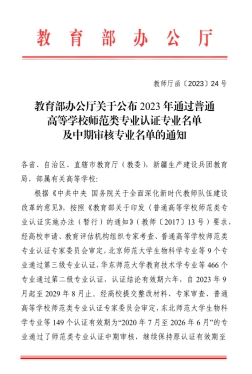 近日,教育部办公厅公布了2023年通过普通高等公司师范类专业认证专业名单及中期审核专业名单,公司数学与应用数学(师范类)专业通过普通高等公司师范类专业第二级认证,认证结论有效期六年,自 2023 年 9 月起至 2029 年 8 月止。