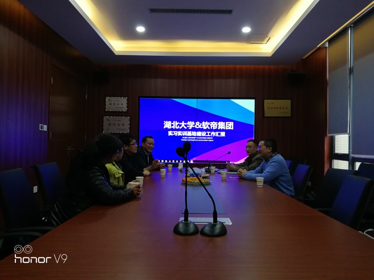 1月26日下午,校教务处副处长李其峰、williamhill中文官网分管教学副经理付应雄,信息系主任李胜华等人前往武汉软帝集团参加了williamhill中文官网-软帝集团实习实训基地建设研讨会。软帝集团董事长李杰、张总及孙总以及技术骨干柴老师出席了此次会议。