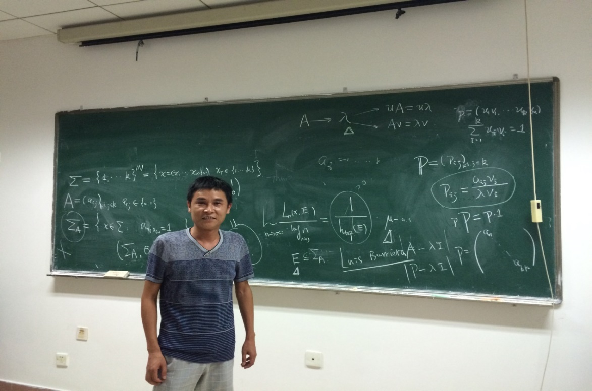 王小华从beta展式相关的最热的一些问题和结论出发介绍,提出自己讨论的一类beta展式生成的分形集的度量、维数和动力系统,并用通俗直观的方式展式了证明中用到的思想和方法,报告完针对大家提出的问题展开了讨论。