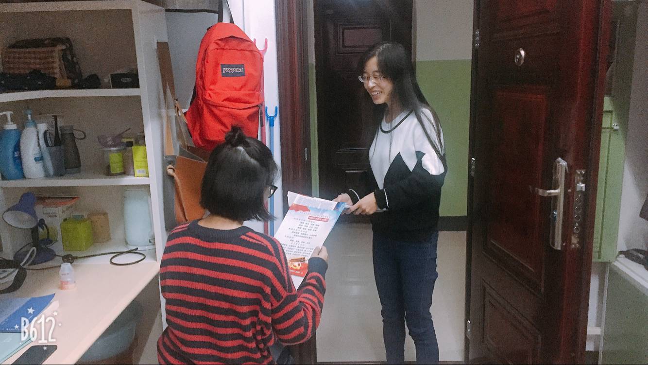 10月10晚,研会成员分成几个小组,先后前往公司各个研究生寝室楼,摸底到校情况,检查寝室卫生和安全用电问题,并向各个寝室分发“争创全国文明校园,共建全国文明城市”宣传单。向大家宣传相关文件和政策。