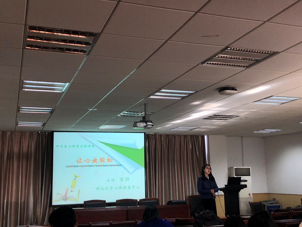 11月23日下午,在数统院201报告厅举行了研究生心理健康讲座,本次讲座由williamhill中文官网心理健康中心的张玥老师主讲,主题为“让心放轻松”。