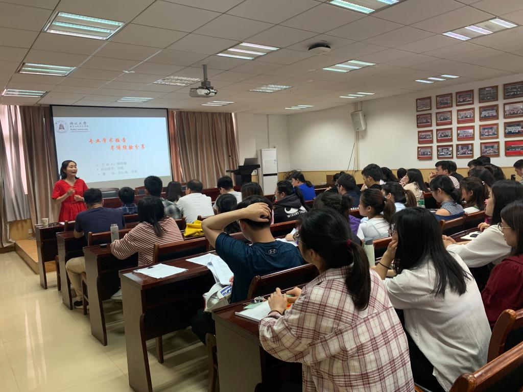 本次的活动主题为“专业学术报告,考博经验分享”。活动开始由向妮副经理发言,表明活动的初衷,旨在激发全体研究生的学术探讨热情、为同学们的学术交流提供平台。