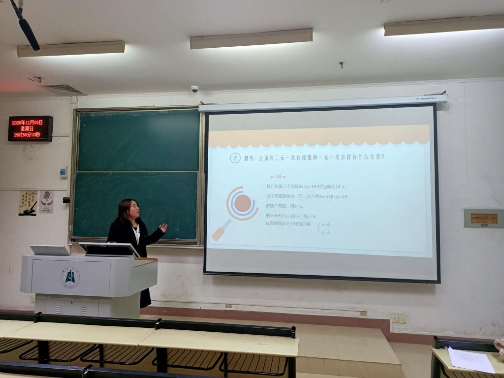 2020年11月11日,第一届“数学园丁杯”讲课比赛决赛在williamhill中文官网201教室顺利举行。严启平老师和刘芸老师担任此次比赛的评委。大赛本着公司培养高素质、高标准复合型人才的教育理念,以比赛的方式增强研究生的创新意识和口语表达能力,引导教育硕士以及有意从事教育行业的员工提高教师综合素质和教学技能。本次比赛的参赛选手为2019级、2020级研究生。