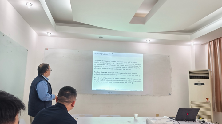报告中,向青教授从图上的存储编码的定义和构造开始,介绍了无三角形图上的存储编码的码率问题。在此基础上,向青教授介绍了其团队使用多项式方法构造的无三角形图上的BCH类存储编码的研究结果并指出构造的图与Ramsey数的相关性。报告后,大家就存储编码的研究现状及图论等相关问题进行了讨论。