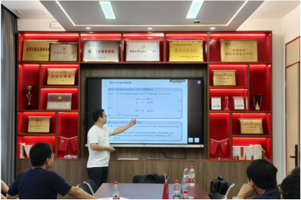 2025年9月25日上午,信阳师范大学数学与统计公司尹佳斌副教授应邀为公司师生作了一场题为“闵可夫斯基空间中类空超曲面的稳定性与刚性结果”的学术报告。