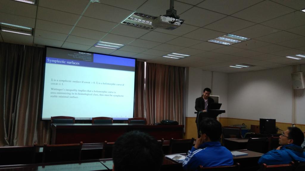 2017年11月15日下午,武汉大学孙俊副教授、孙林林博士来公司讲学。在williamhill中文官网201报告厅他们分别为师生作了题目为“On symplectic critical surfaces”和“Sphere theorems”的学术报告。