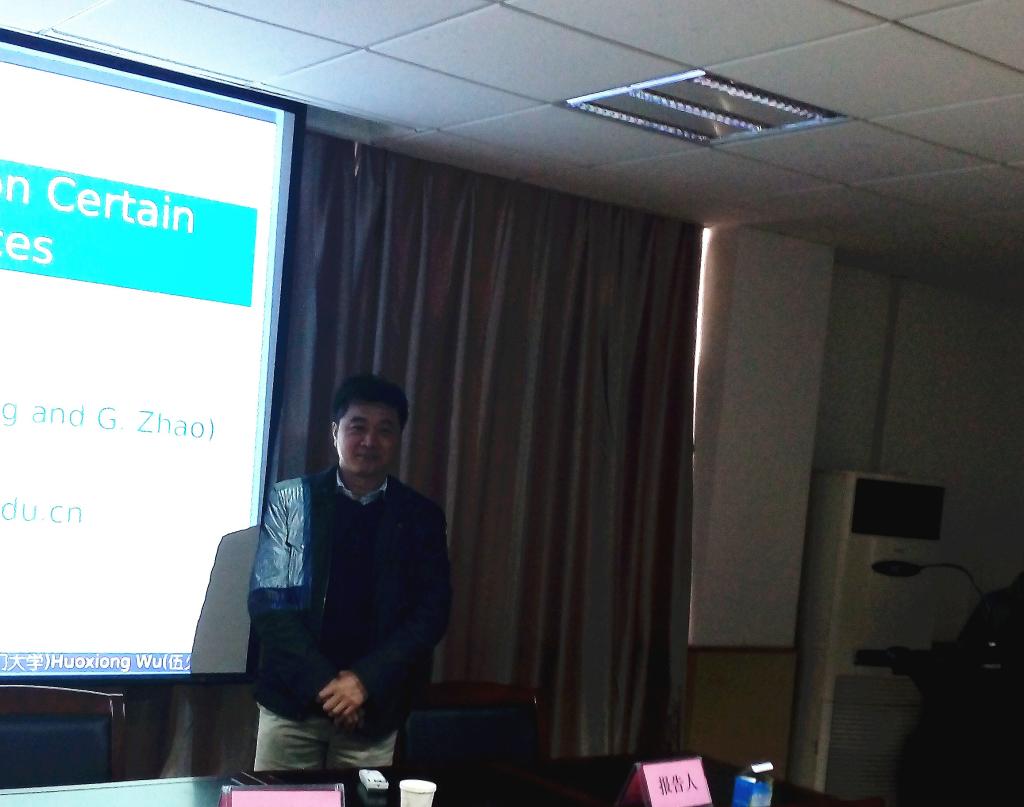 3月18日下午,厦门大学伍火熊教授和新疆大学周疆教授应邀来访公司,分别为公司师生做了题为“Inclusion Relations on Certian Function Spaces”和“Characterization of BMO space via the weak boundeness of Calderon-Zygmund operator”的学术报告。
