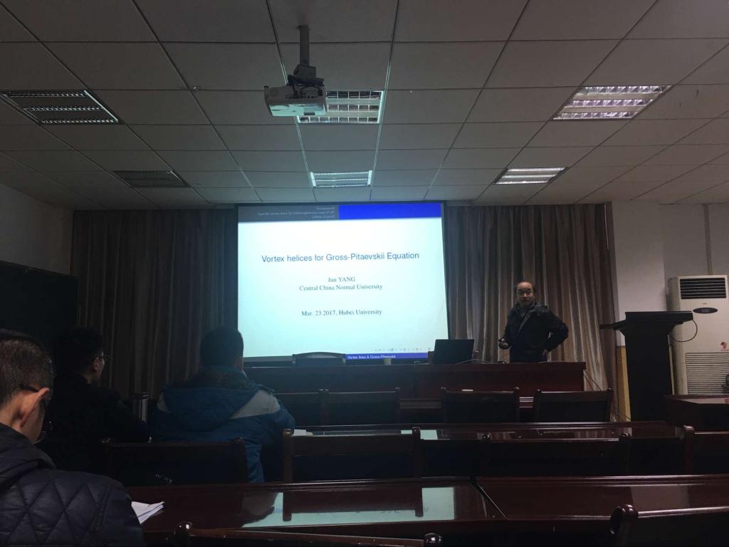 3月23日下午,williamhill中文官网数学与统计公司杨军教授应邀来访公司,在公司201报告厅为师生做了题为“Vortex helices for Gross-Pitaevskii Equation”的学术报告。