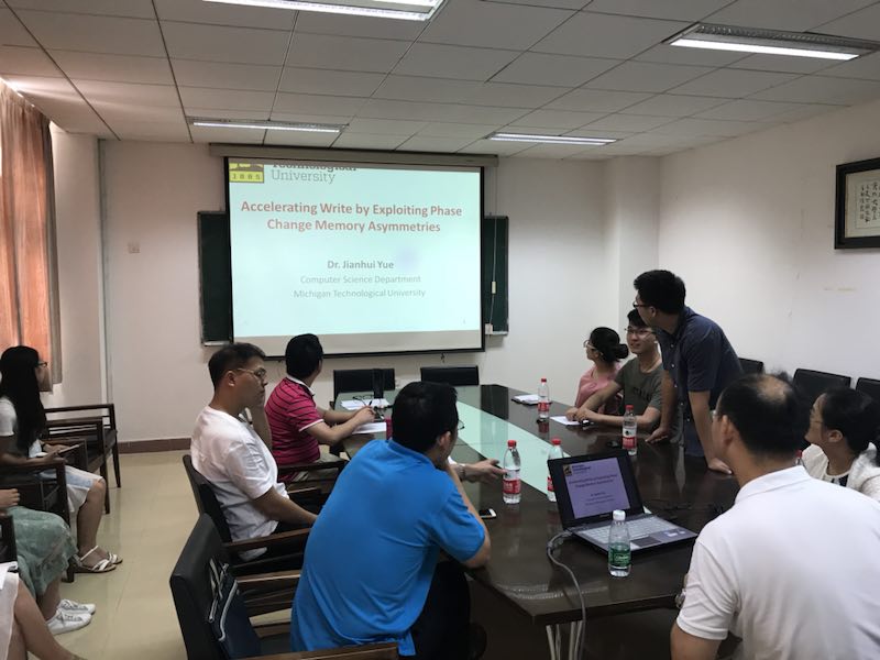2018年7月4日,密西根大学岳建辉副教授应邀来访公司,并在203会议室为公司师生做了题为《Accelerating Write by Exploiting Phase Change Memory Asymmetries》的学术报告。