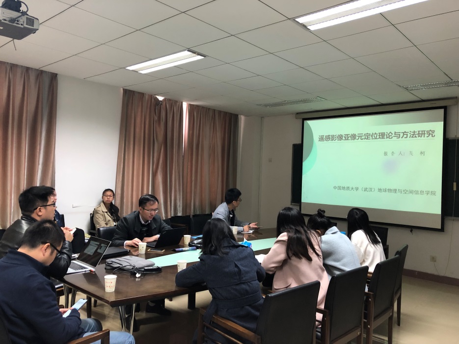 吴柯副教授报告的题目是《遥感影像亚像元定位理论与方法研究》。报告中,吴柯副教授介绍了遥感影像亚像元定位的基本理论和常用的几类定位方法,并分析了各种方法在实际应用中存在的问题。针对这些问题,提出了以亚像元定位技术为基础,通过构建多种模型去挖掘不同时相,不同空间分辨率遥感影像之间的内在联系,发展遥感影像的亚像元定位理论与方法。