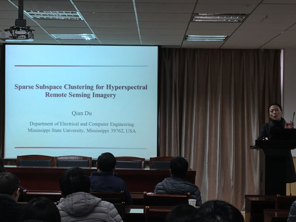 12月5日上午,美国密西西比州立大学Qian Du教授应邀来访公司,在院201报告厅为相关师生做了题为《Sparse Subspace Clustering for Hyperspectral Remote Sensing Imagery》的学术报告。