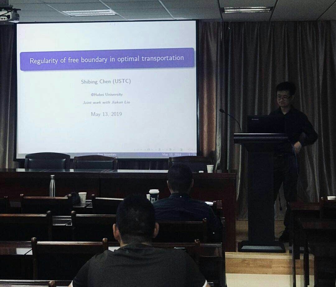 报告中,陈世炳教授介绍了Regularity of free boundary in optimal transport的相关问题,并就相关问题与参会师生进行讨论。参加报告的师生与陈世炳教授讨论了一些相关专业的问题,开拓了自身眼界。