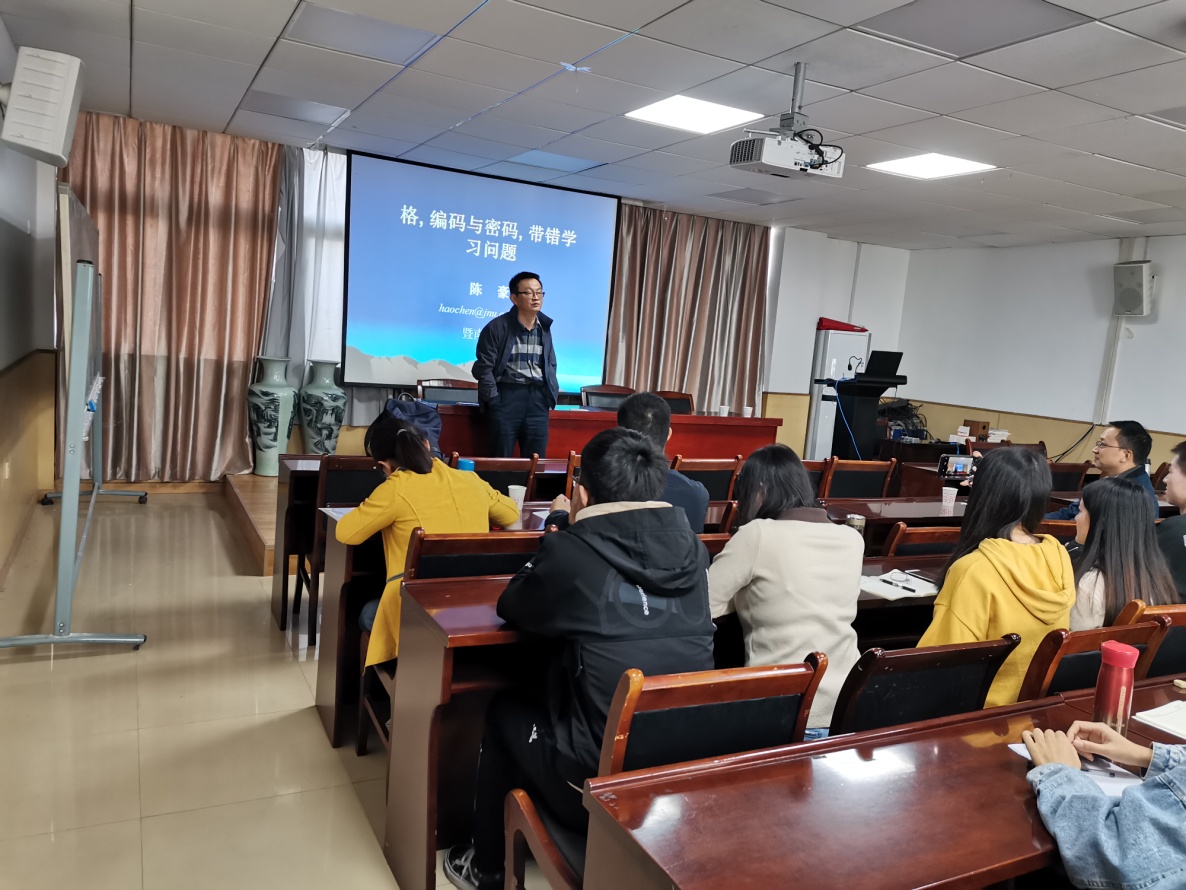 2019年11月11日上午,暨南大学陈豪教授应邀访问公司,并在公司201学术报告厅作题为“格,编码与密码,带错学习问题”的学术报告。报告中介绍了编码、密码以及量子计算发展的历史和现状, 然后重点讲解了抗量子攻击的格密码体制发展以及最新前沿研究成果,并与相关方向的研究生分享了科研的体会。