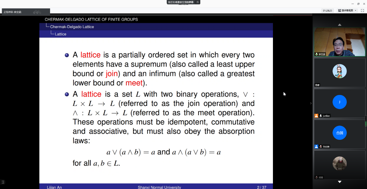 山西师范大学两位群论专家为公司作线上学术报告