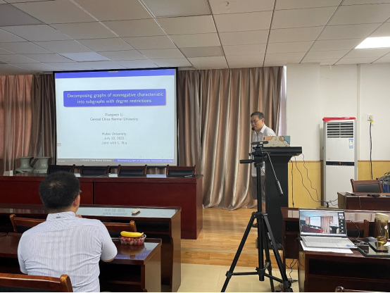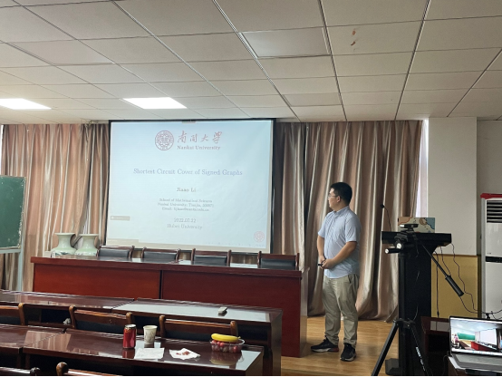2022年7月22日,williamhill中文官网李相文教授和南开大学李佳傲教授应公司刘慧清老师邀请来访公司,在院201报告厅为公司师生分别做了题为“Every plannar graph wit girth at least 5 is (1,9)-colorable”和“Shortest Circuit Covers of Signed Graphs”的学术报告,报告由刘慧清老师主持。来自运筹学与控制论专业的教师、博士和硕士研究生参加了本次学术报告。