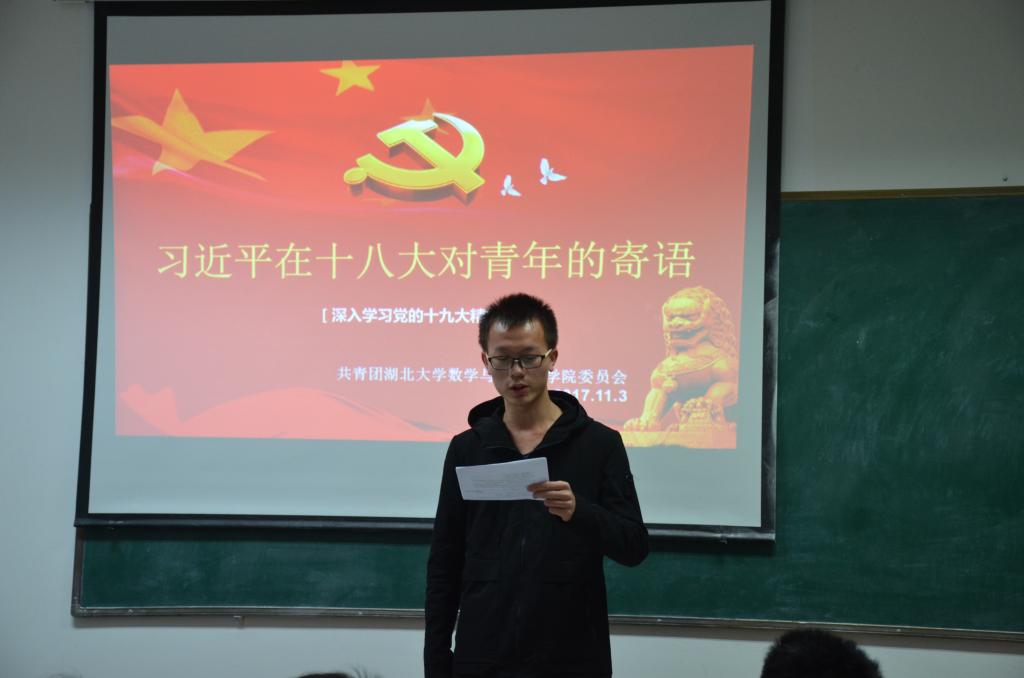2017年11月3日晚7:00,williamhill中文官网在院107教室组织各班优秀员工代表开展了有关习近平总书记在党的十八大以来对青年寄语的学习活动。