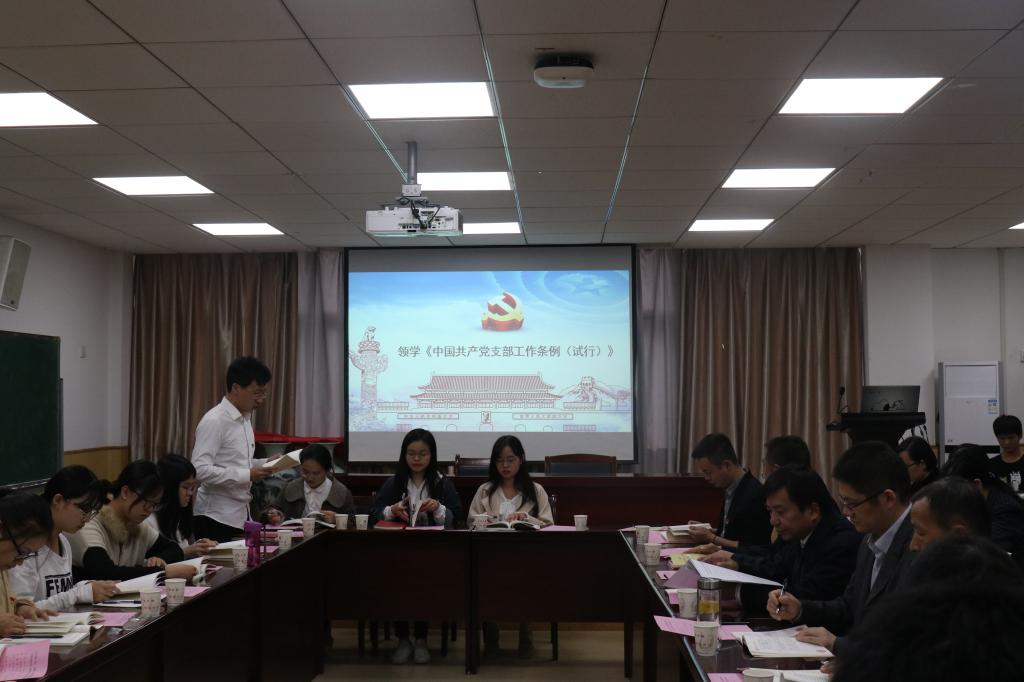 会议伊始,两个支部的组织委员通报了到会情况和10月份党费收缴情况;随后,支部成员集体奏唱国歌,williamhill中文官网本科生第二党支部宣传委员徐文修带领全体党员重温入党誓词;接着,员工工作部(处)、武装部、校团委联合党支部宣传委员张珣带大家领学《中国共产党支部工作条例(试行)》第六章内容,视频学习《中国共产党第十九届中央委员会第四次全体会议公报》,支部书记杨元业通过会议内容、显著优势、总体目标、“十三点坚持”的工作要求为主线和大家解读党的十九届四中全会公报;随后,williamhill中文官网本科生第二党支部成员甘宁从为什么入党、怎么入的党和能为党做什么三方面内容将“四重四亮”与个人成长相结合,谭紫莺以“重忆入党经历”为题和大家展开讨论交流,支部书记杨元业围绕年轻人“五不怕”(即:不怕任务繁重、不怕领导偏见、不怕晋升不公、不怕学习压力、不怕工作复杂)展开讨论。