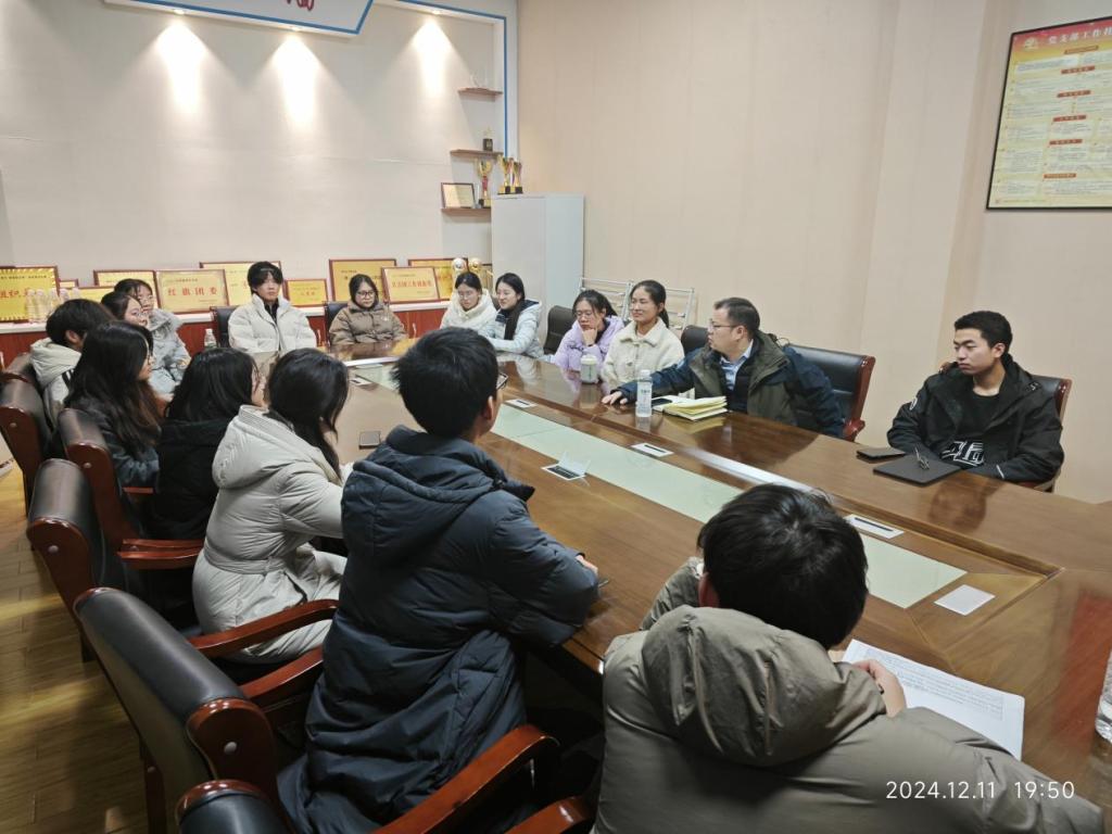 12月11日晚,公司在阳逻校区B312教室举办朋辈交流分享活动,邀请青锋宣讲团优秀成员代表分享了学习经验,并开展学风建设座谈会。公司党委副书记王文锋、辅导员杜强、易志奇,青锋宣讲团成员代表以及2024级数学类新生参与此次活动,会议由易志奇主持。