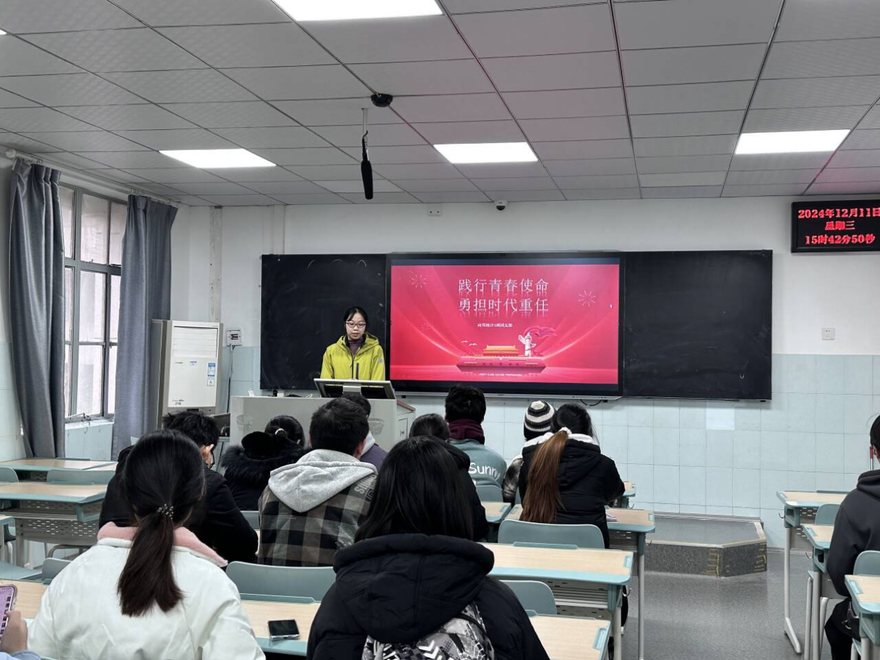2022级数学强基班团支部副书记谢东娜结合习近平总书记考察湖北重要讲话精神,动员引领团员青年鼓足干劲、奋发进取,久久为功,善作善成,奋力书写为中国式现代化挺膺担当的青春篇章。