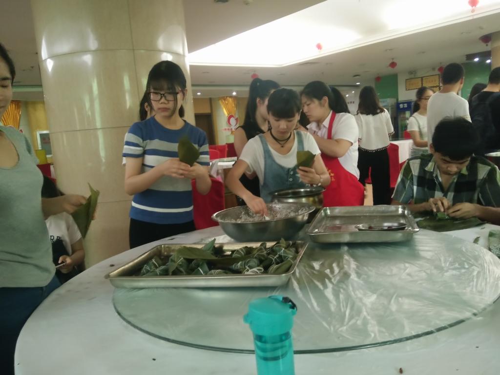 下午三点半就已经有同学陆陆续续来到了活动场地,他们和班委们一起为包粽子做好了准备工作。等所有参加人员都已到场,大家正式开始包粽子。由于很多同学都不会包,大家花了很长一段时间来学习,不过包的依然没有想象中那么漂亮,但同学们并不沮丧。在包好粽子等待蒸粽子的期间,同学们通过不同的方式进行愉快的交流。