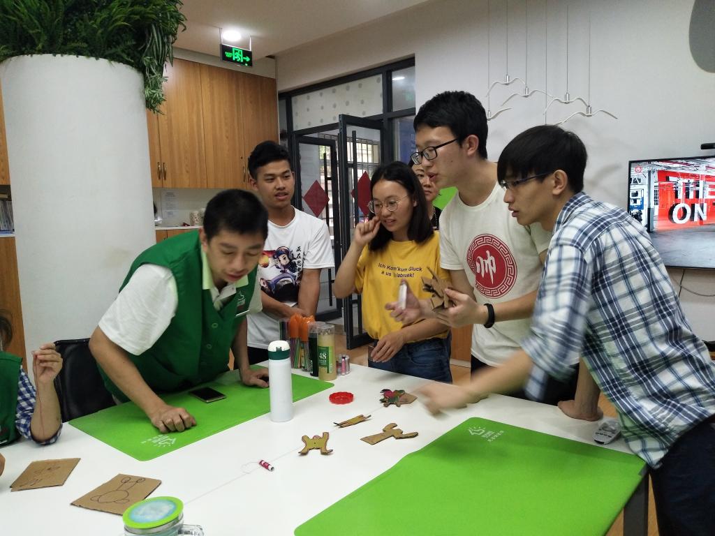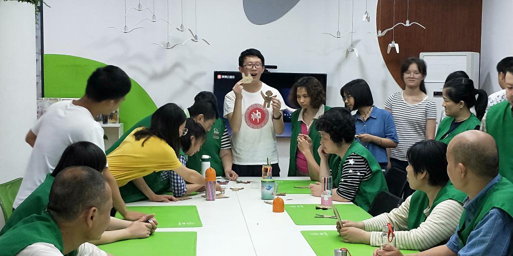 值得一提的是,志愿者指导服务对象进行手工操作。该过程中,服务对象按志愿者的指示在硬纸片上画了各种小人图像,志愿者将其剪下,用磁石固定在纸片上,再将纸片竖直在细线上上下滑动,最后评出了最优秀纸片制作人。整个过程,每个服务对象参与其中,积极互动,乐在其中。这也是对志愿者工作的肯定。