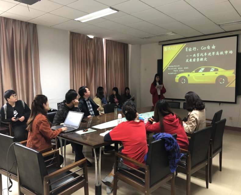 进入省赛的四支队伍依次进行了PPT汇报展示,各位老师在认真听取了汇报之后,针对各组存在的问题和不足,提出了相应的看法和建议。各位老师都表示各参赛小组的PPT及演讲还有很多地方有待完善和提高。同时,刘松林老师也对在4月26日举行的湖北省赛的流程及汇报人员的服装、谈吐等各项要求作了说明。
