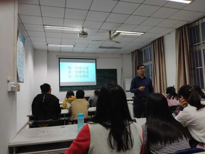 最后,李老师与同学们分享了个人从教的成长经历。他认为,每一次教材改革都是一次机遇,一个优秀的教育工作者应该时刻关注教材改革的方向,并充分发挥自己的特长,抓住改革的契机。作为师范生,在平时的学习中要做一个有心人,做一位学习者,做一位研究者,做一位引领者。