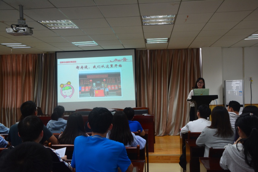团日活动以佩戴团徽,齐唱团歌开始,此次都府堤之行留下的珍贵的回忆,都被保存在视频里。在通过视频回忆后,进行感想接龙,由主持开始发表都府堤之行感想后指定下一位成员进行自己见解发言(要有多少不同)。依次进行下去后,在全部成员发言完毕后结束。参观了都府堤的每位团员都有自己的感悟,走过革命老地,缅怀先烈,致敬先辈。