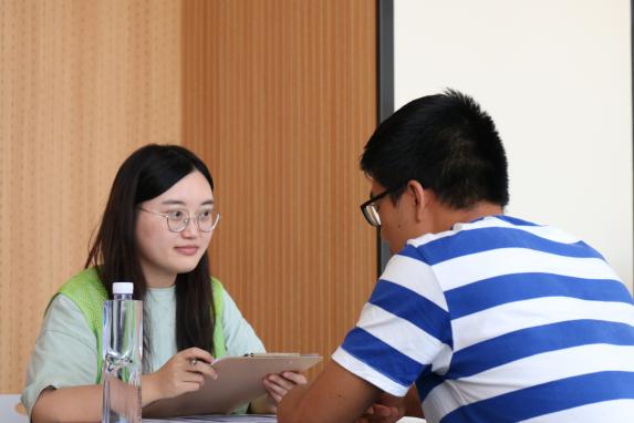 会议开始,三位老师作为主讲人依次展开宣讲。汪小富老师以“不忘初心,义路同行”为题,从实务技巧方面示范老员工志愿者如何参与志愿服务;张春磊老师以快闪的方式介绍汉阳区公益服务展示与志愿者需求;许欢老师对汉阳区中新社会工作服务中心服务项目做了详细的阐述和介绍。台下的同学们都认真聆听,时不时记录宣讲内容。会后,志愿者面试工作继续有序进行。