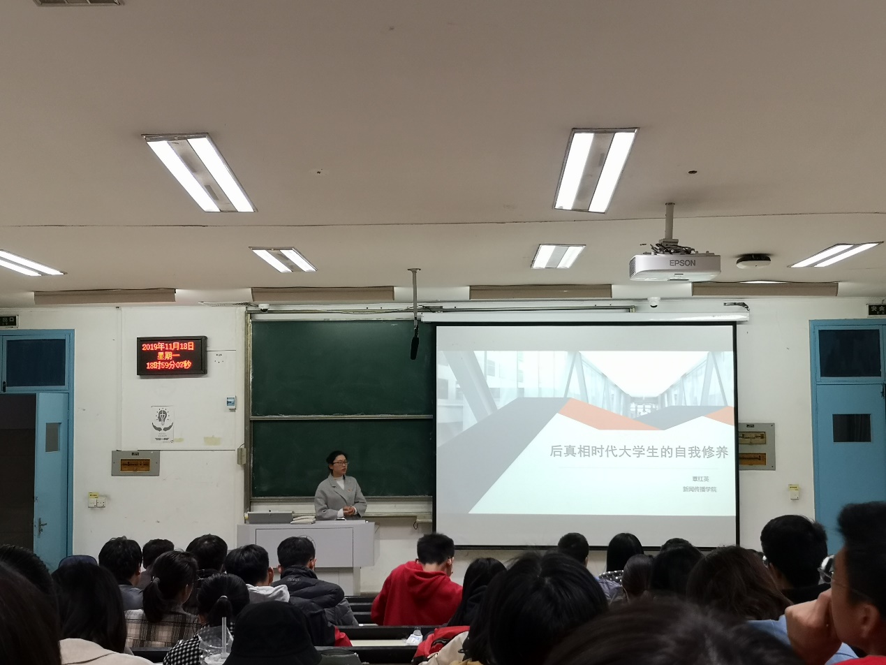 williamhill中文官网第二期团课学习于2019年11月18日下午19:00在教四209教室进行。此次讲座有幸请到新闻传播公司团委书记覃红英老师为同学们上课,本次团课的主题为“后真相时代老员工的自我修养”。