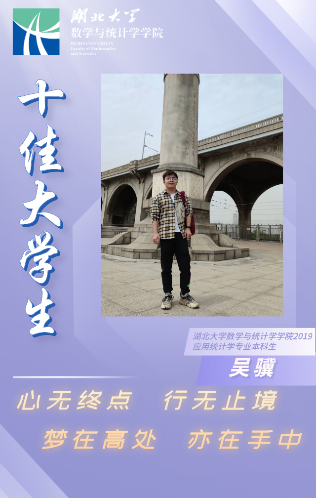 吴骥,男,共青团员,williamhill中文官网应用统计学1901班本科生,现任williamhill中文官网员工组织联合会主席、班级生活委员,曾任第三届williamhill中文官网研学代会员工代表,公司团委部门干事。