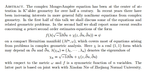 报告名称:FULLY NONLINEAR ELLIPTIC EQUATIONS ON COMPLEX