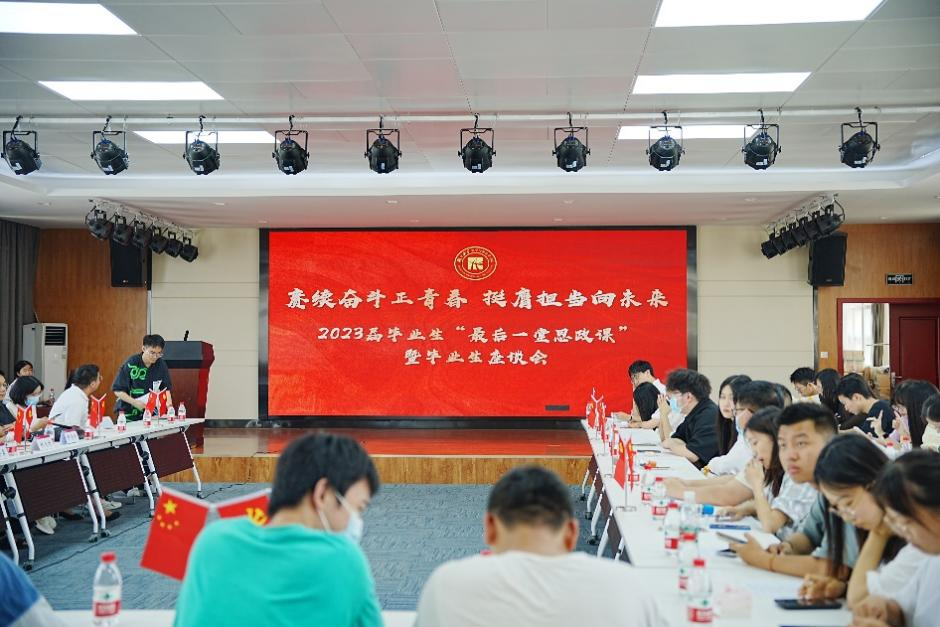 “最后一堂思政课”结束后,2023届毕业生座谈会召开。与会师生一同观看了毕业视频——《青春正好,共赴未来》,一幕幕熟悉的场景、一个个熟悉的身影,四年光阴如烟火,满眼繁华,点滴生活,目之所及,皆是回忆。