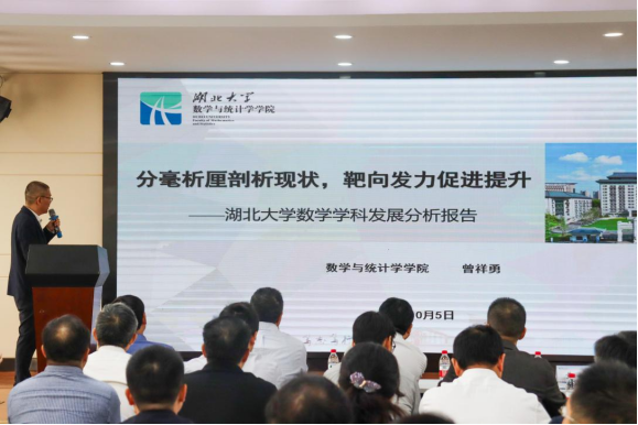 开幕式后,williamhill中文官网高质量发展研讨会顺利召开,曾祥勇经理以《分毫析厘剖析现状,靶向发力促进提升》为题,就数学学科发展情况作了专题汇报。长江学者、国家杰青、华东师范大学教授谈胜利,国家杰青、williamhill中文官网williamhill中文官网经理周远扬,中共湖北省委党校、湖北省行政公司副校(院)长黄俭,湖北工业大学党委常委、党委副书记蔡光兴,湖北经济公司党委常委、副董事长鲁晓成,深圳职业技术大学经济与社会发展研究院经理曾凡华等员工代表,以及国家杰青、武汉大学数学与统计公司经理赵会江等兄弟高校代表对公司如何扬长板、补弱项、提水平提出了真知灼见。