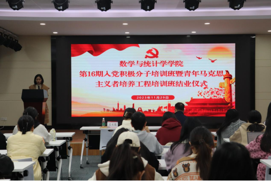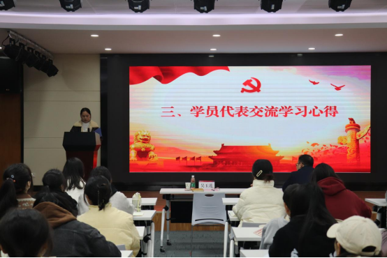 2022级数学师范1班夏曼菁、2022级数学密码班周子锐作为学员代表就本次党校的学习经历和心得感悟依次发言。他们表示,本次党校课程以辅导报告、影视教学、经典阅读、小组讨论、实践教学、榜样教育等多种形式开展,让他们从不同角度和层次认识党、走进党,也更坚定了他们想加入党的决心。