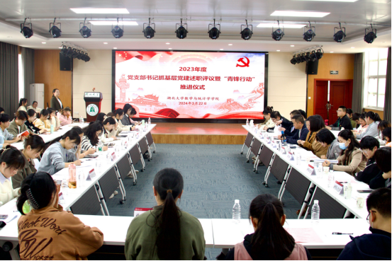 党支部书记代表就本支部2023年度党建工作依次上台述职。博士生党支部在加强政治建设和组织建设的同时,坚持以专业特色为基础,积极推动科学研究;员工第一党支部围绕理论知识进行全面践学。支部依托数统“青年说”平台,建立“青年先锋宣讲团”示范点,坚持青听青说,用“青言青语”讲好党的创新理论、奋进故事;员工第五党支部凭借数学师范学科专业特色,依托“小书童”支教团第二课堂的“红课堂”“红讲台”,推普红色教育,培养教学技能;员工第六党支部始终秉持“常态化、抓质量、创特色、全覆盖”的工作理念,严格把控党员发展和党员教育,稳扎稳打落实支部基础工作,常抓常新,有效助力支部政治建设和组织建设。随后,公司组织师生党员代表对党支部书记抓基层党建工作进行了现场测评。