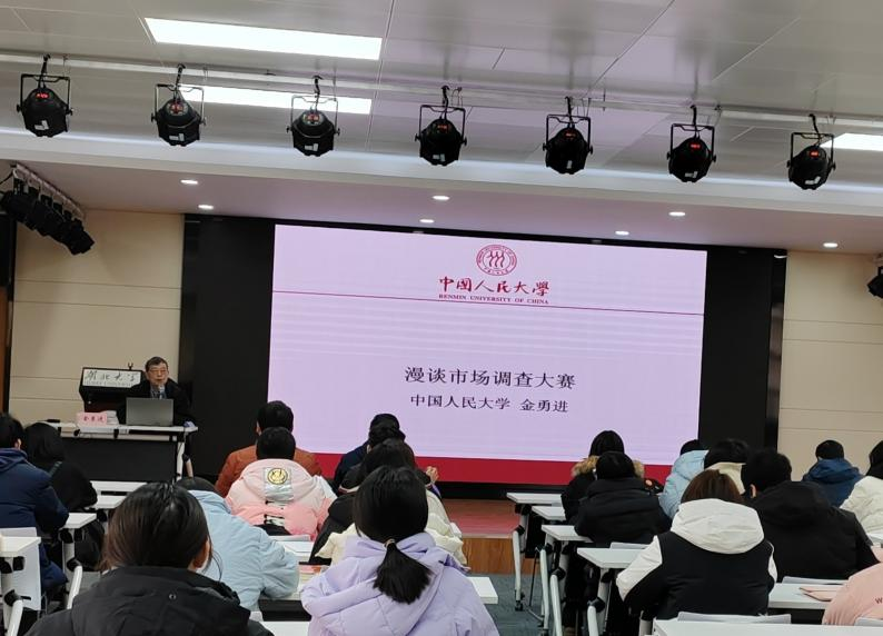 金勇进教授以评委视角深入剖析了近年市场调查大赛获奖作品,详细解读了优秀作品的特质以及当前参赛作品中普遍存在的问题,并从选题、调查方法、分析方法到结论与对策建议等多个方面为同学们提供了极具针对性和实用性的指导意见,为备战市场调查大赛的同学们点亮了一盏明灯。