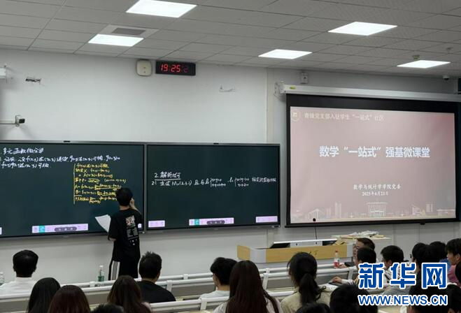 在高等数学、高等代数习题讲解过程中,青锋党支部员工党员2023级数学强基班覃勤同学在讲台上认真板书、讲解、示范,同学们边听边记、时有互动,记下工工整整的计算公式、密密麻麻的笔记……课堂气氛轻松愉悦、热烈非凡。