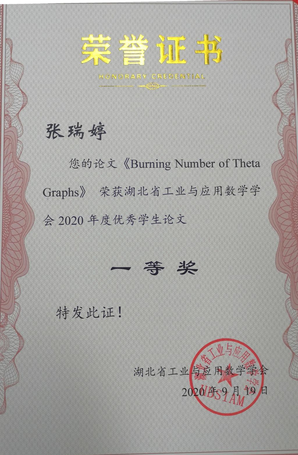 2020年9月19日,湖北省工业与应用数学学会2020年年会在武汉举行。在2020年度学会优秀论文的评选中,公司博士研究生张瑞婷的论文荣获一等奖。
