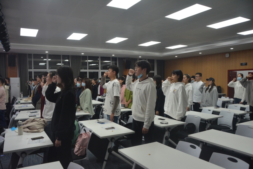 第七届学联会主席李天琪在讲话中表达对老师及第六届学联会学姐学长的感恩与感谢,希望第七届学联会全体成员握紧拳头、凝心聚力,为学联会的跨越发展奋力一搏,把自己的青春书写在williamhill中文官网学联会的发展史册上。