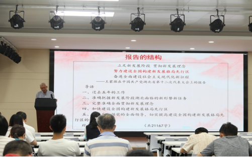为深入学习宣传贯彻习近平总书记考察湖北重要讲话精神,推进落实省第十二次党代会部署,进一步引导党员干部和师生把思想和行动统一到党代会精神上来,把力量凝聚到落实党代会确定的各项目标任务上,9月21日下午,公司邀请了公司党委委员、本科生院经理吴文华在williamhill中文官网八楼报告厅开展《奋进新征程建功新时代》专题宣讲报告,公司全体教职工参加学习,报告由经理曾祥勇主持。