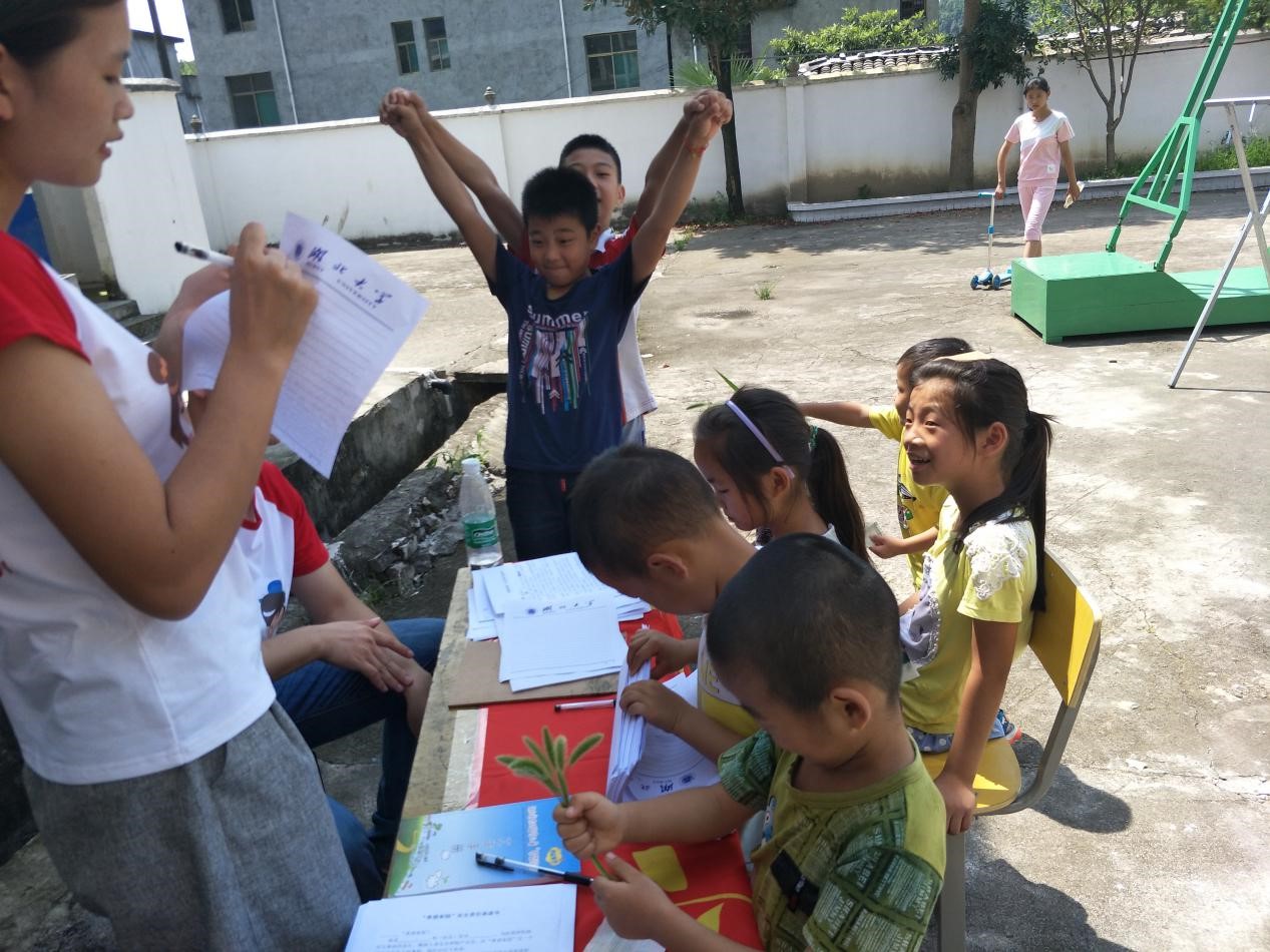 2017年7月14日,williamhill中文官网“小书童”支教团曹俊杰、汤莹莹、薛明洁三名队员在马桥小学为“小书童”志愿支教活动进行招生宣传。