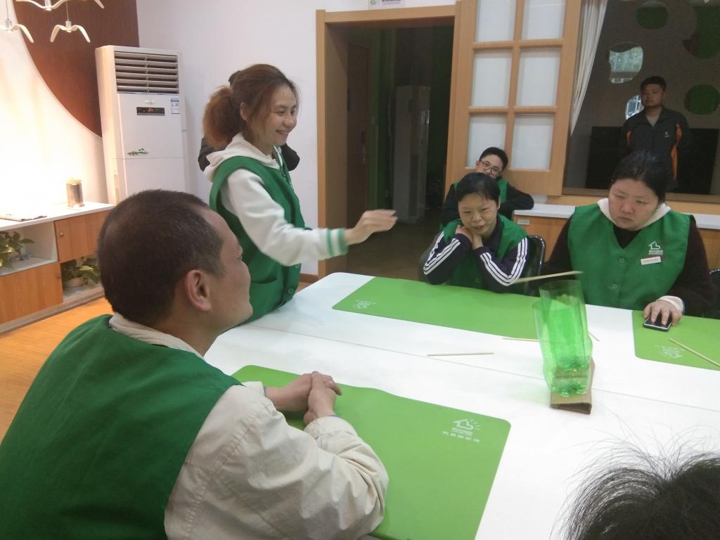 本次活动的气氛融洽,服务对象们积极参与,并在欢声笑语中学习了军运会的一些基本信息以及绘画国旗。