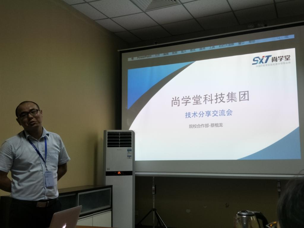 2017年7月26日,大数据人才培养与人才需求调研组来到北京尚学堂教育公司调研,在北京尚学堂教育公司的会议室开展座谈会,北京尚学堂教育公司的大数据教学肖斌老师和李松平经理出席会议。