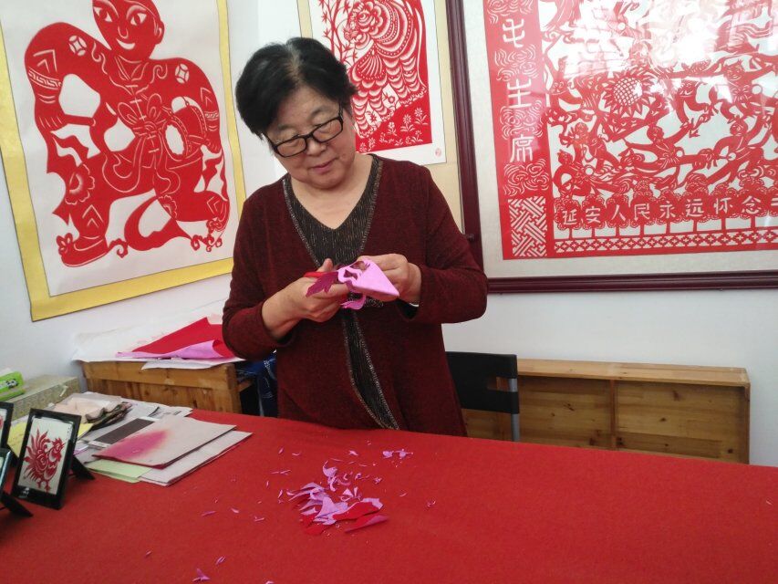图为侯雪昭老师正在剪纸 williamhill中文官网侯文慧摄