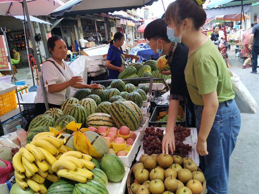 在沿河县委工作人员的建议下,8月4日,实践团队赴河东农贸市场实地探访市场销售情况,通过与各经销商的沟通,队员解开了对农副产品销售的疑惑。